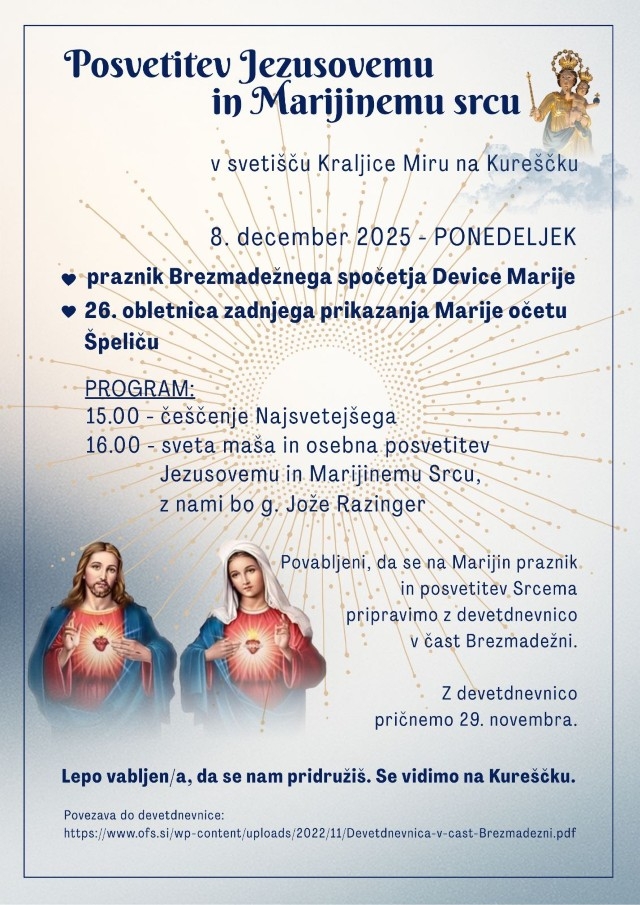 S Kraljico miru skozi advent, Posvetitev Marijinemu in Jezusovemu srcu, Koledar za leto 2026